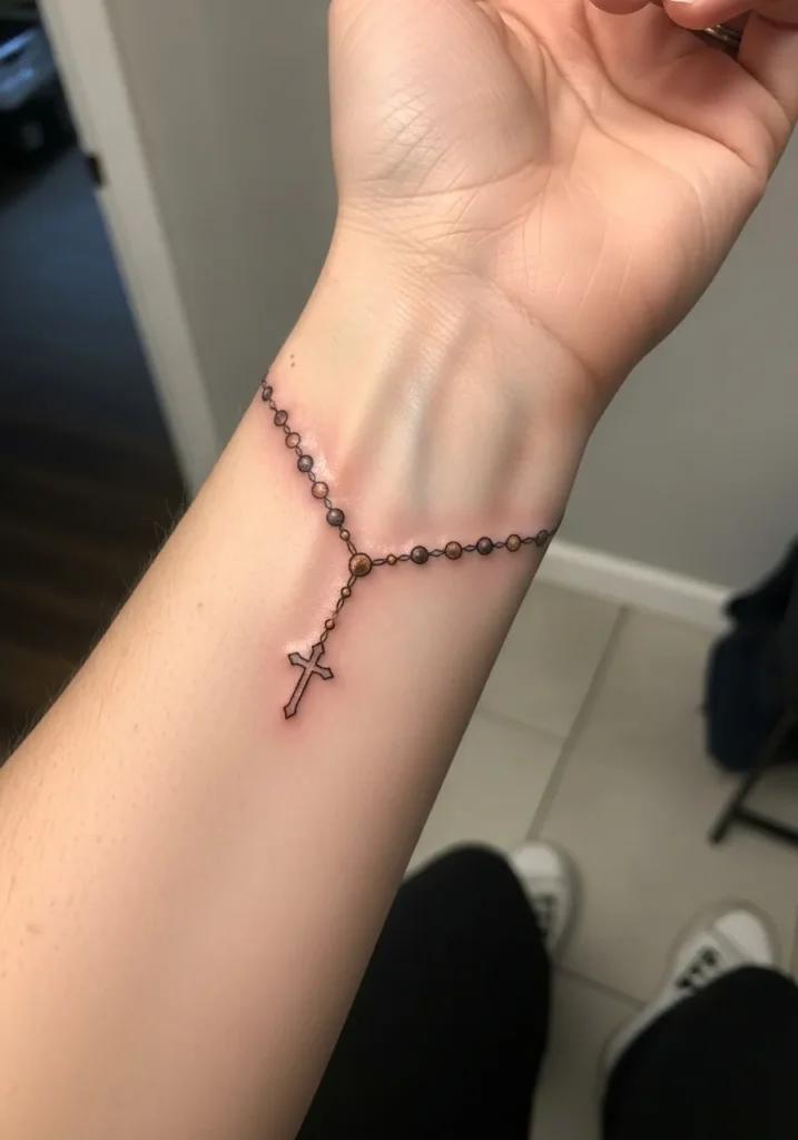 Rosary Bracelet Wrist Tattoo