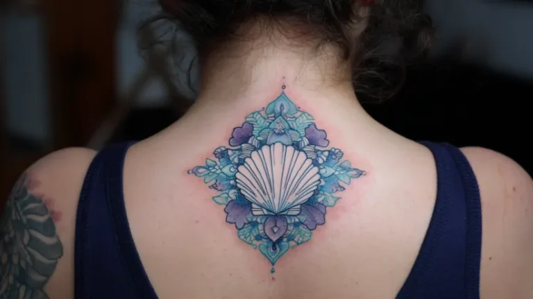 I’m absolutely enchanted by how unique and delicate this tattoo is! The seashell, with its gorgeous watercolor hues, makes me feel like I’m carrying a piece of the serene ocean with me, and all those intricate mandala details are just so mesmerizing. It’s such a beautifully artistic and personal statement, and I think it would make anyone feel incredibly connected to the magic of the sea and wonderfully adorned.
