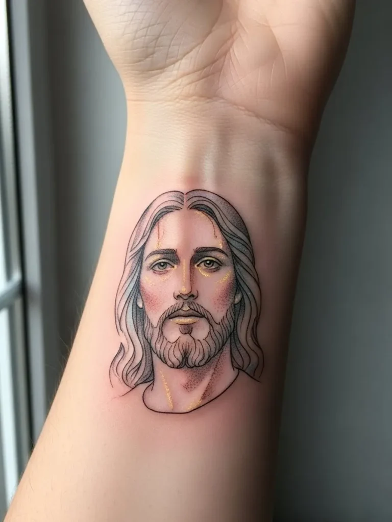 Soft Fine Line Jesus Wrist Portrait