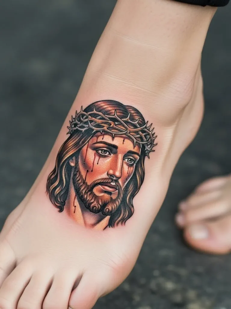 Jesus Face Foot Tattoo