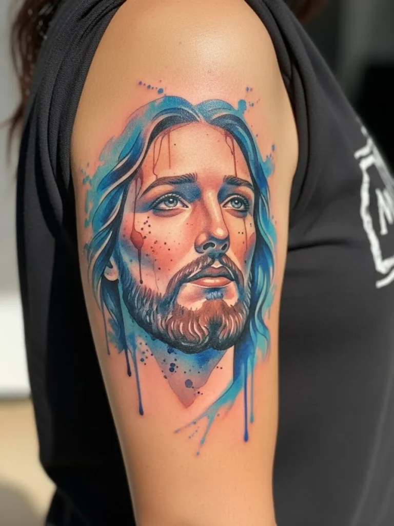 Watercolor Jesus Upper Arm Statement