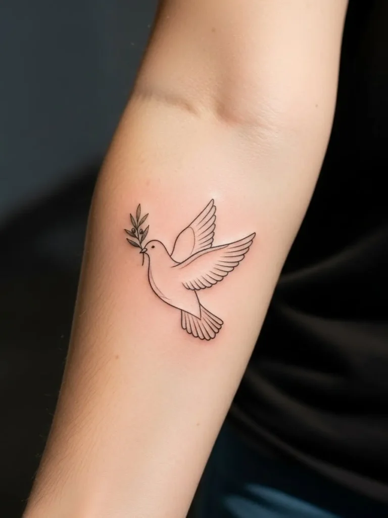 This design feels like peace in tattoo form. I love how calm and hopeful it looks, almost like a quiet promise. It is the kind of tattoo that feels soothing just to look at.