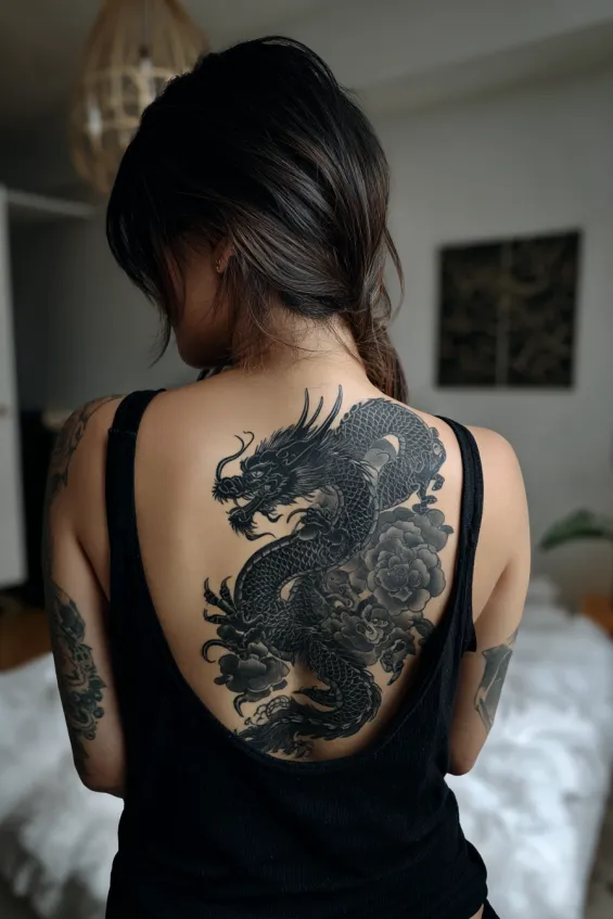 Some people love colorful designs, but I keep coming back to bold black dragons because they never go out of style and they age beautifully.