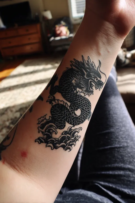 I think forearm tattoos are such a great choice if you want to see your art every day. There is something motivating about having a dragon right there, almost like a reminder of your own strength and resilience.