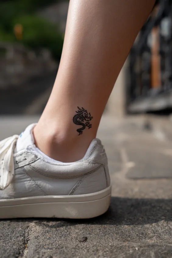 Ankle tattoos always feel a little flirty to me. This tiny dragon has such fierce energy packed into a small space. It is perfect for someone who wants strength in a more understated way.