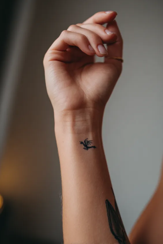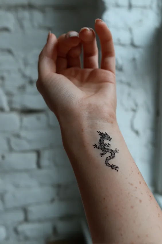 I find wrist tattoos incredibly personal. You see them constantly, which makes them feel like daily affirmations. A dragon here feels like a quiet reminder that you are stronger than you think.