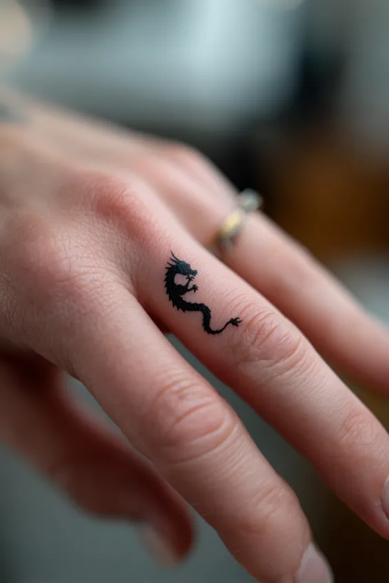I cannot help but love how bold finger tattoos feel despite their size. This little dragon is playful yet powerful. It is perfect for someone who wants their strength right at their fingertips.