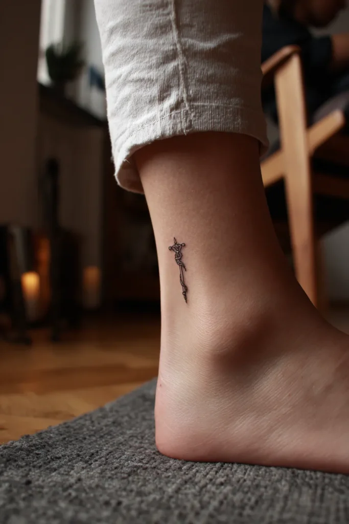 This design features a petite anchor tattoo placed just above the ankle bone, done in crisp black ink with minimal detailing. The size keeps it elegant while the placement gives it a soft, grounded feel that works beautifully with bare ankles or cuffed jeans.