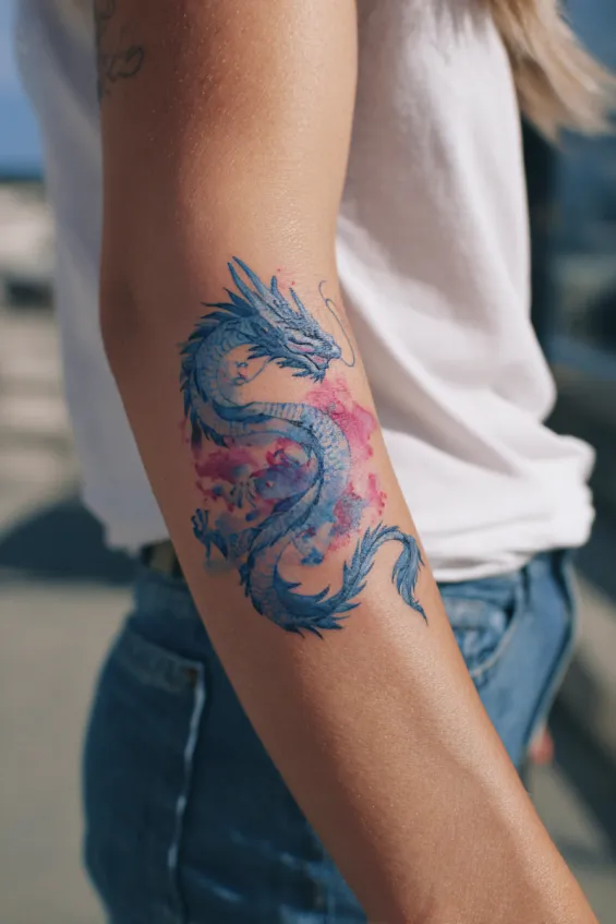 I adore how playful and fearless this one looks. It feels like creative energy brought to life on skin. For me, a watercolor dragon like this represents strength that is emotional and intuitive, not rigid or harsh. It is bold in its own beautifully artistic way.