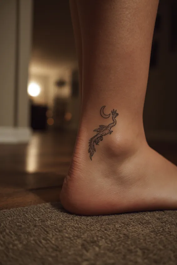 Ankle tattoos always feel graceful to me. This one feels like strength that moves with you. It is subtle, but every step you take carries that reminder of resilience and courage.