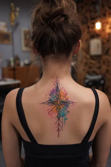 I am completely head over heels for the sheer energy and beauty of this tattoo. The watercolor effect is just breathtaking, making the colors look so vibrant and alive on the skin. It feels like such a modern and artistic take on a classic symbol, blending faith with a truly creative spirit. I think it is perfect for anyone who wants a tattoo that is both deeply meaningful and undeniably eye-catching, it just exudes such a wonderful sense of freedom and expression!