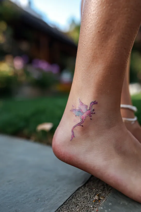 Pastel Watercolor Dragon on the Ankle