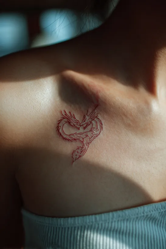 Tiny Ornamental Dragon Along the Collarbone
