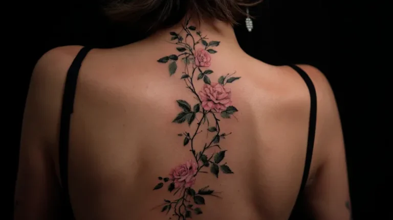 Honestly, I absolutely adore how classic and beautifully feminine this rose vine tattoo is! The rich pinks of the roses are just so captivating, and the way they bloom and trail down the spine feels incredibly romantic and graceful. It’s such a lovely way to celebrate enduring beauty and strength, and I think it would make anyone feel wonderfully elegant and confident with this stunning floral art.