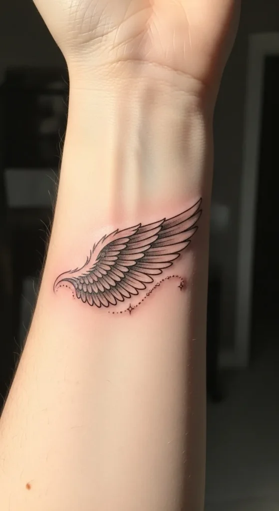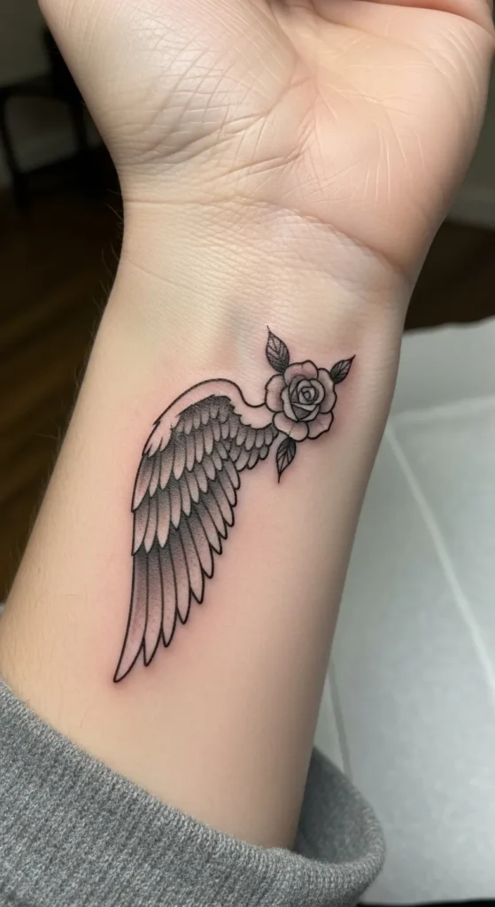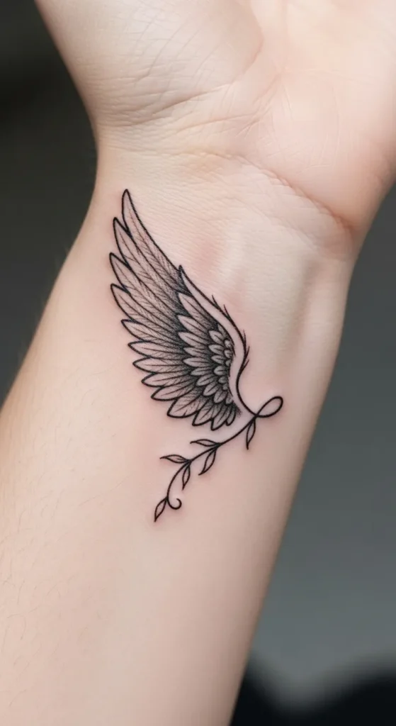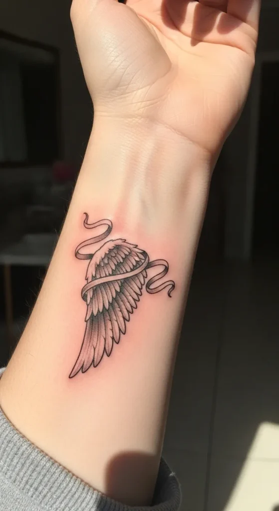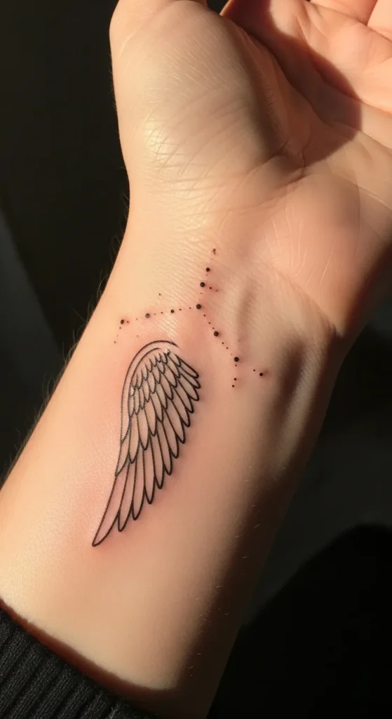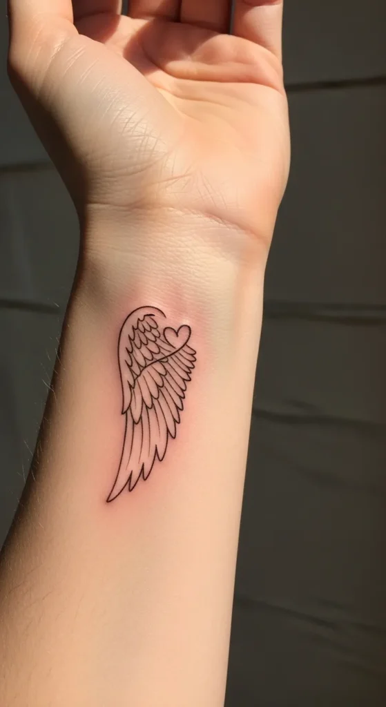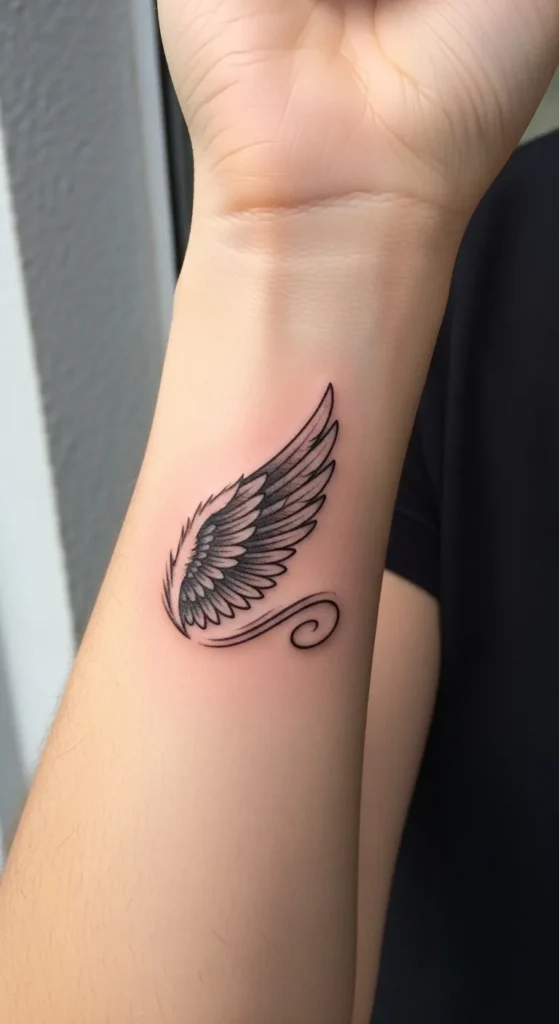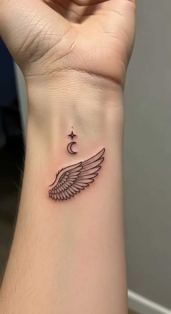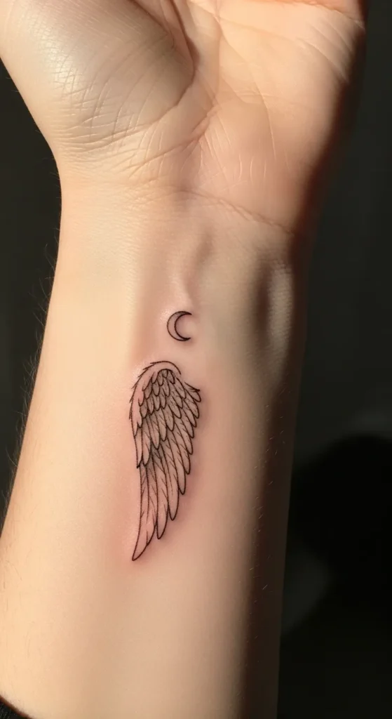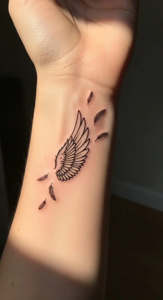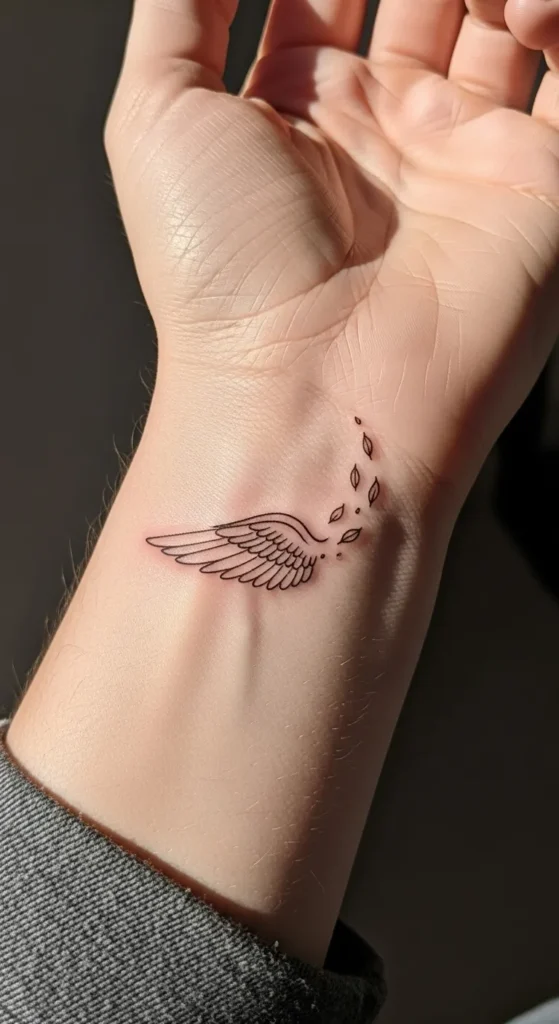 These tiny angel wing wrist tattoos feel like little reminders of strength and freedom without taking over my style.