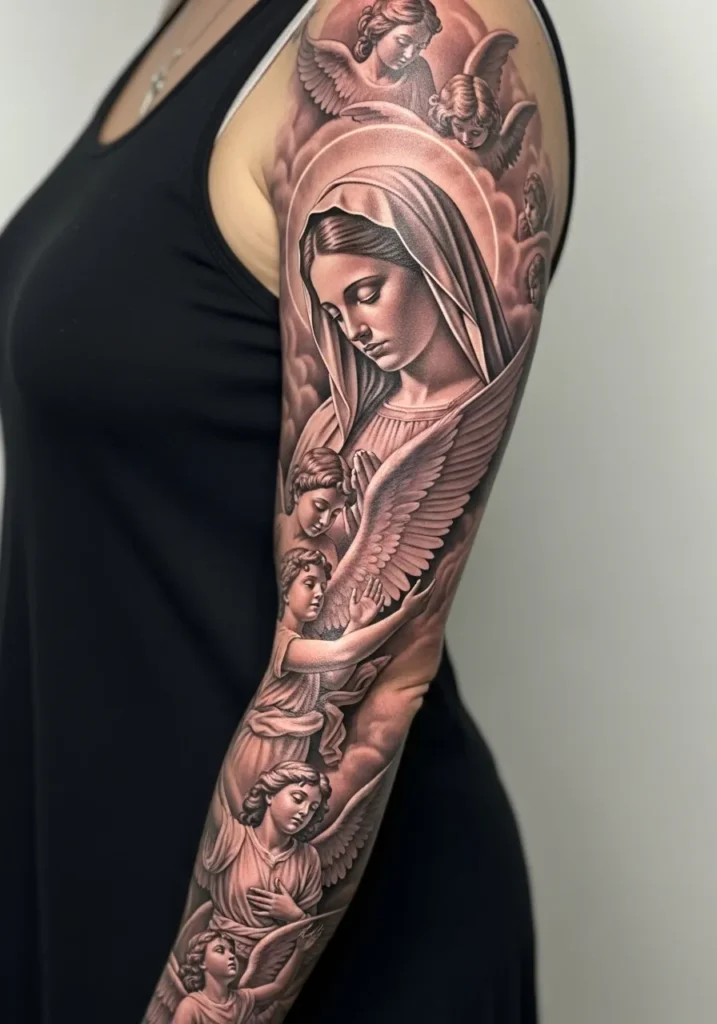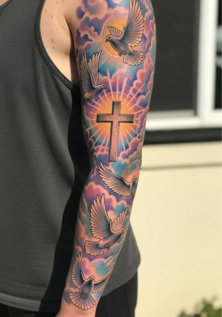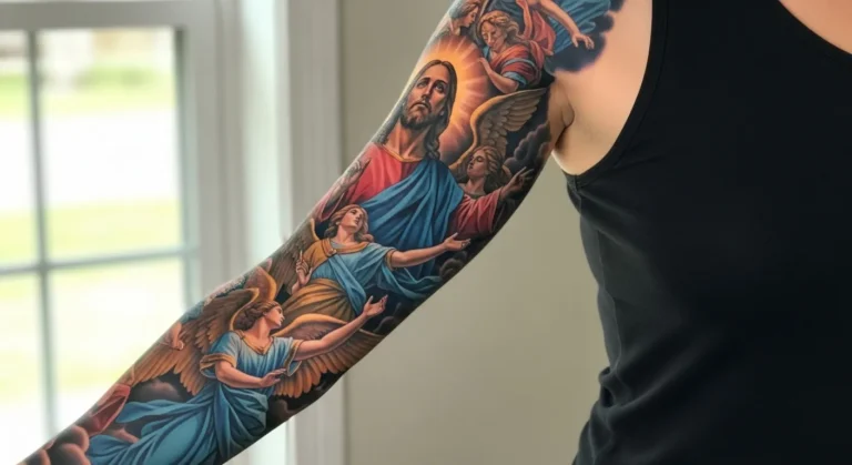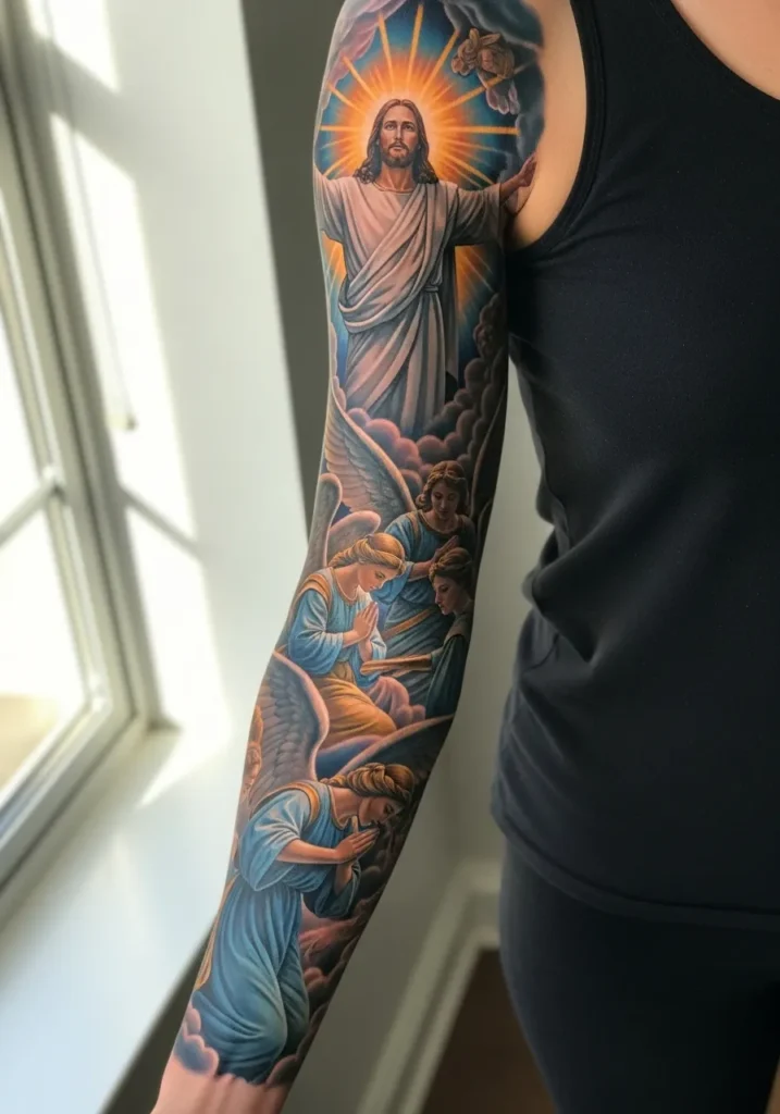 Some people love subtle symbols, but I am drawn to dramatic Christian sleeves that feel powerful, emotional, and deeply personal.