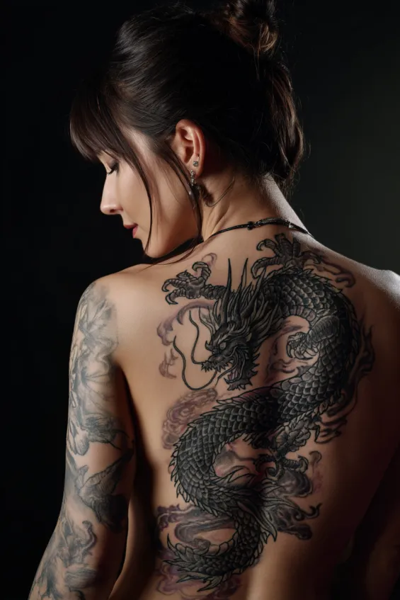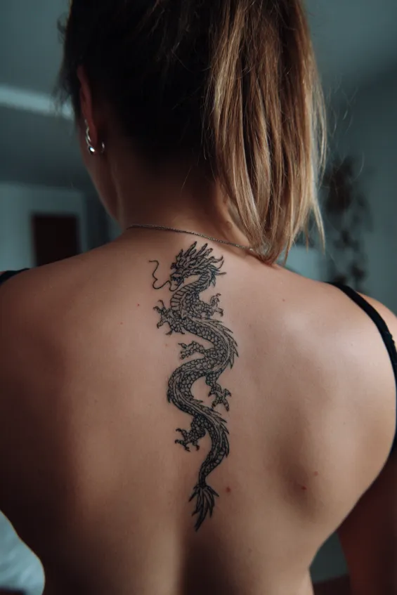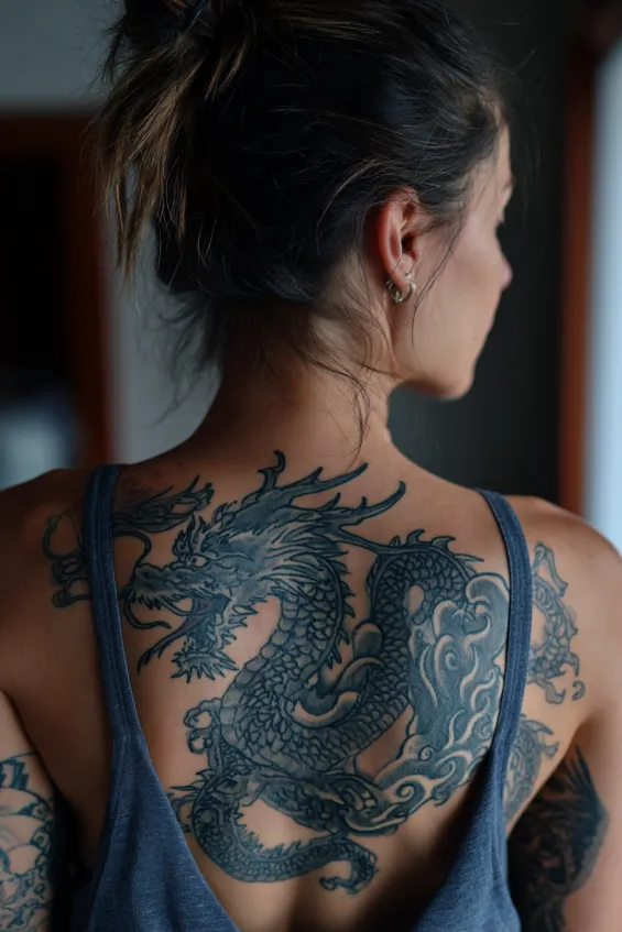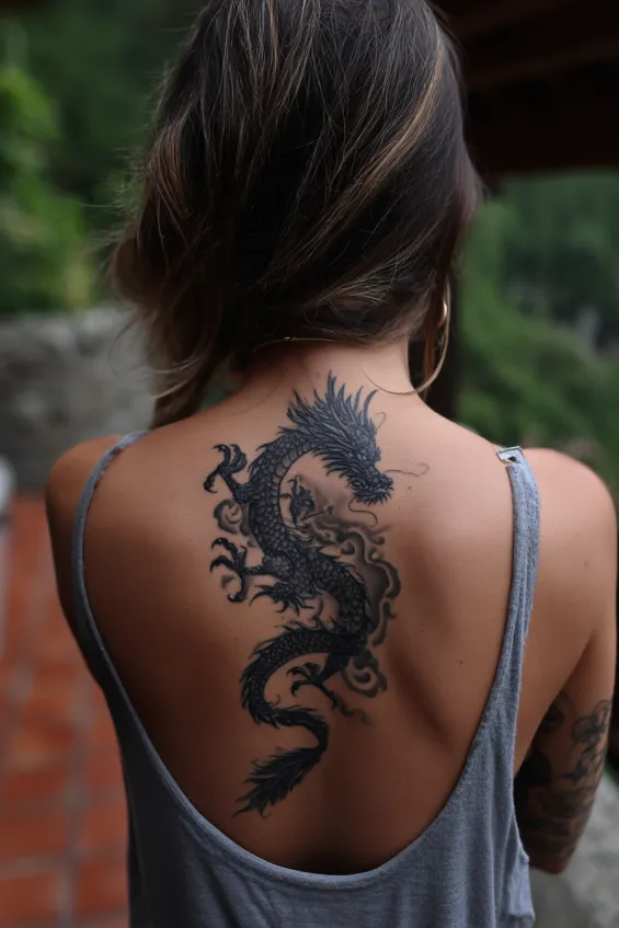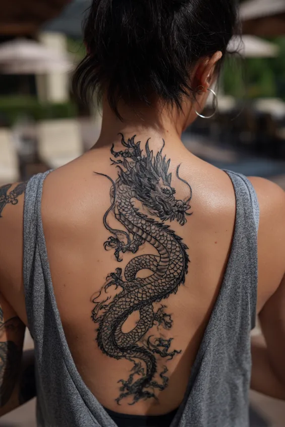 25 Elegant Dragon Back Tattoos for Women With Flowing Movement