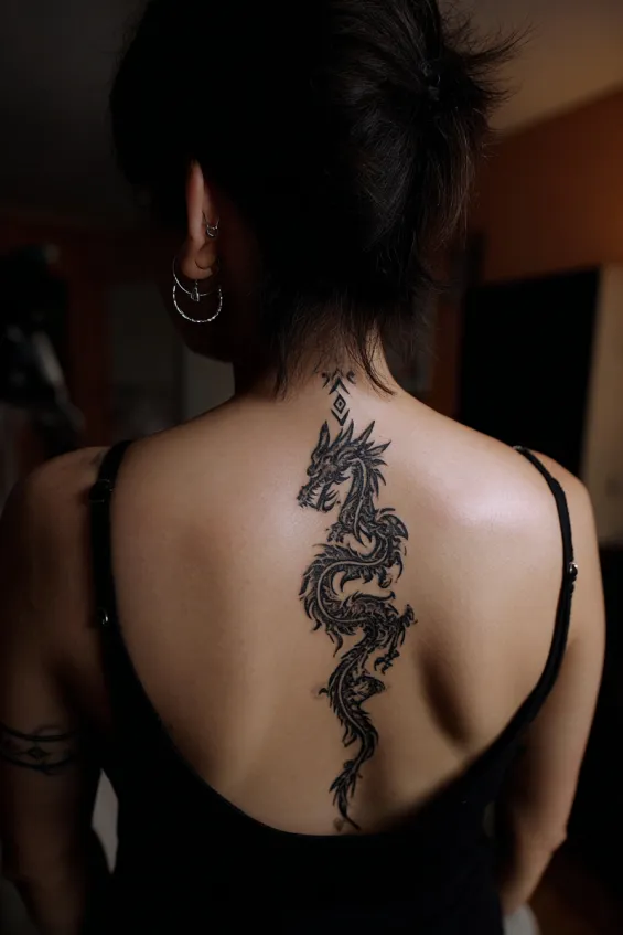 If you’re into tattoos that highlight your shape instead of hiding it, a dragon that flows from neck to lower back can feel incredibly flattering and confident.