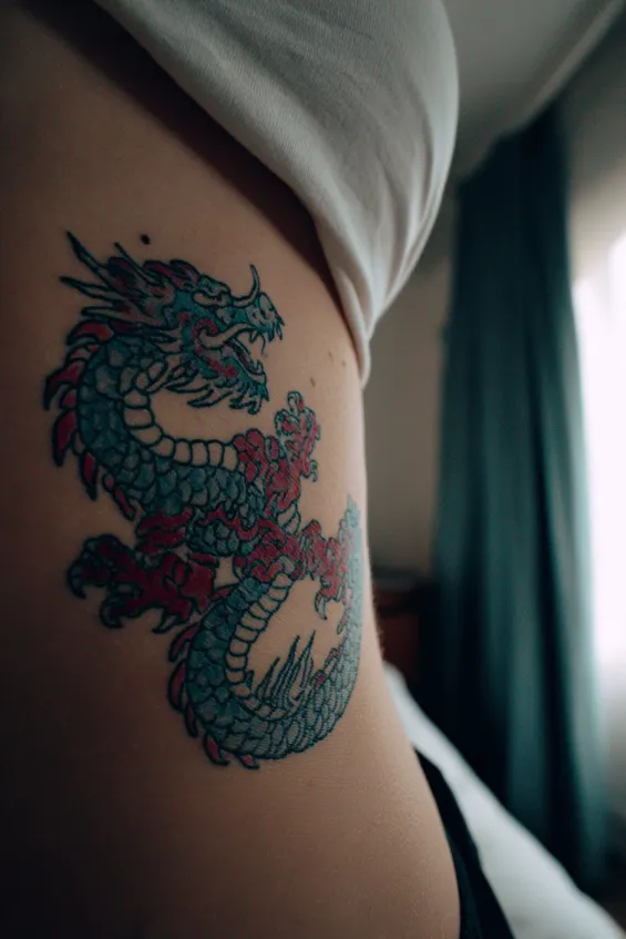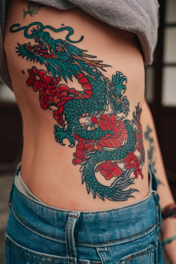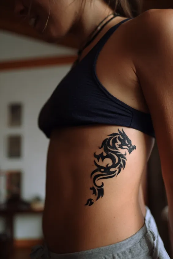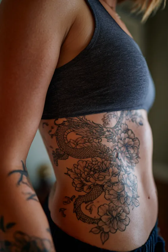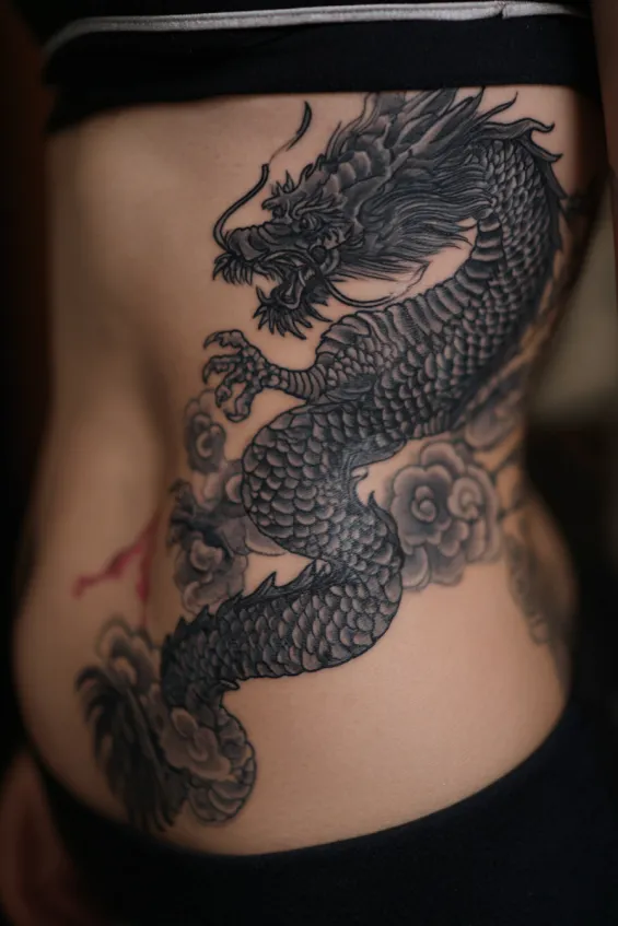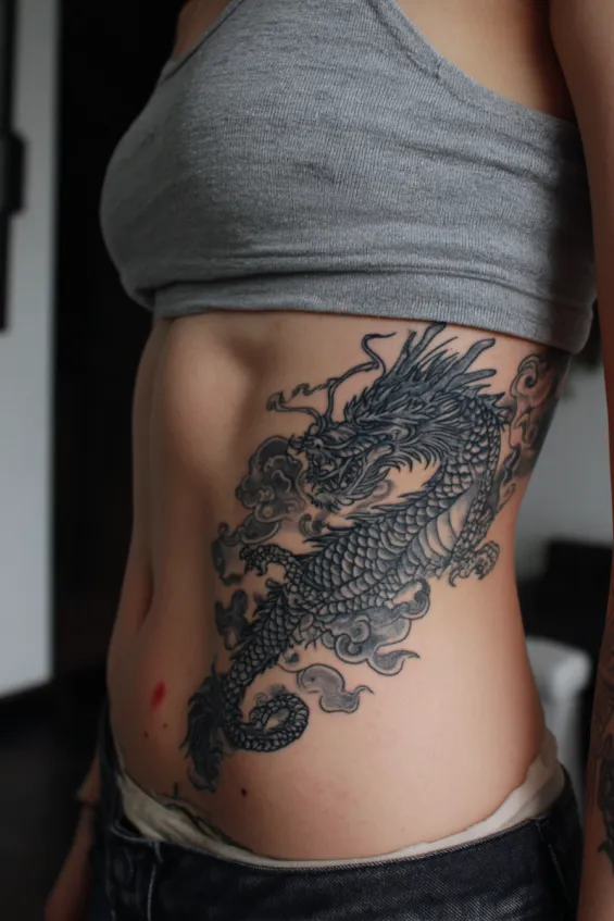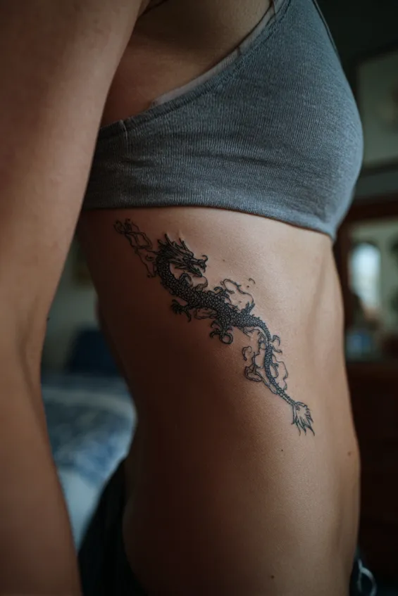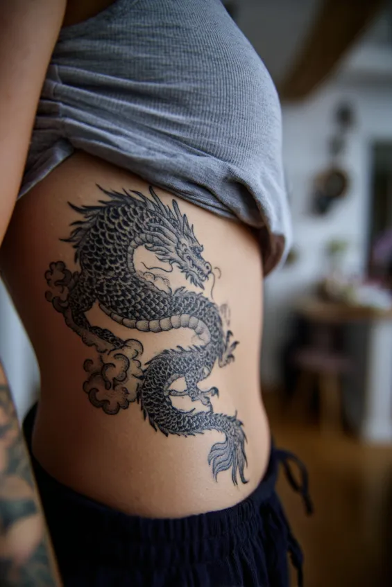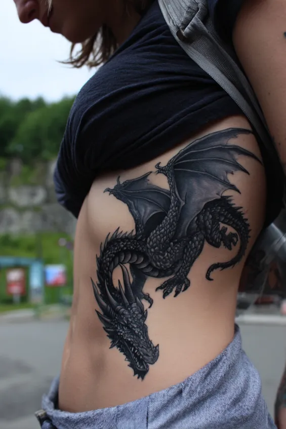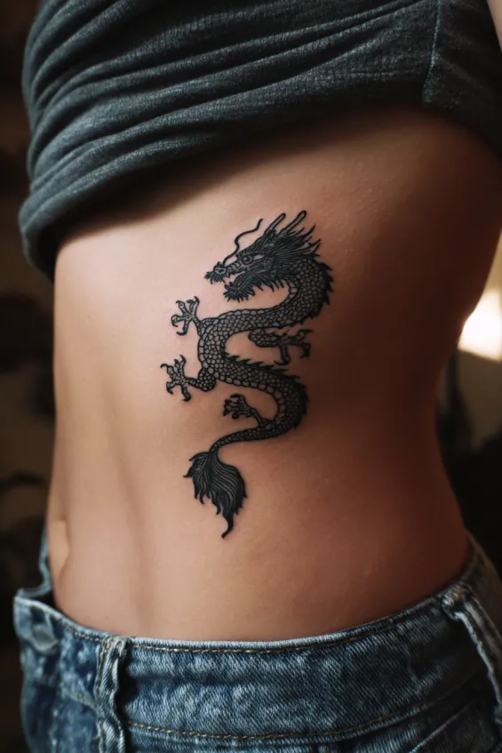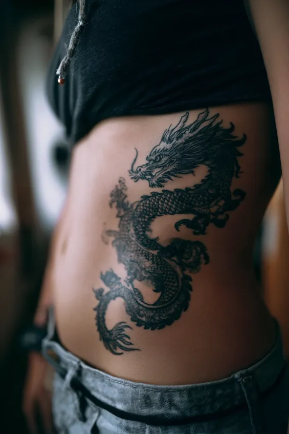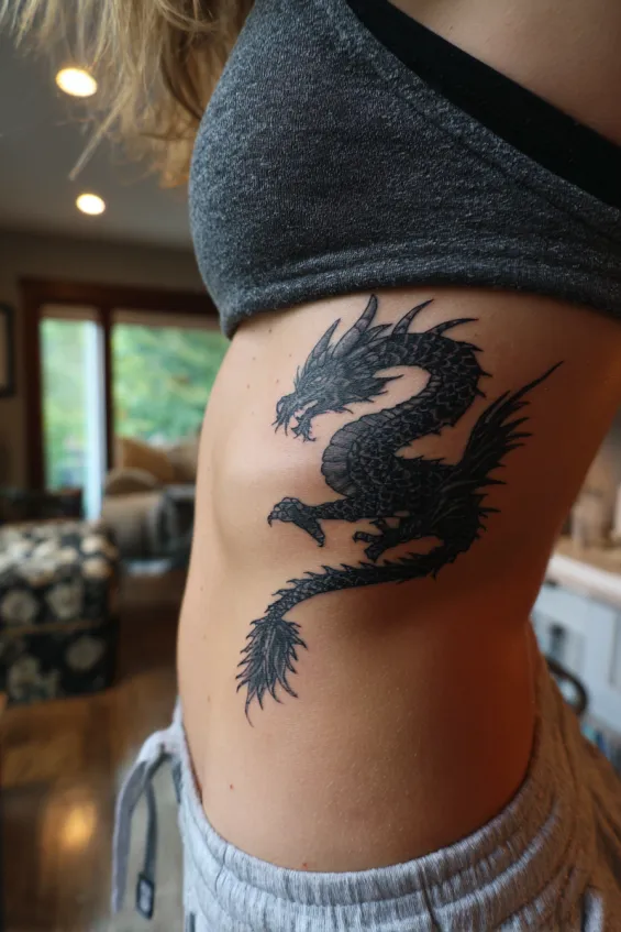 If you are into designs that feel feminine but still bold, a dragon along the ribs hits that sweet spot perfectly.