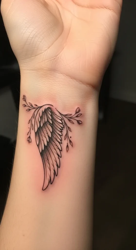 I am honestly obsessed with how this design manages to be both powerful and dainty at the same time. There is something so poetic about a single wing because it can represent protection or the memory of someone special watching over you. I love how the placement allows you to see it every time you move your arm. It feels like a little secret reminder of your own strength and grace. It is the kind of piece that looks like fine jewelry on the skin, and I think it would look stunning paired with a few gold bracelets.