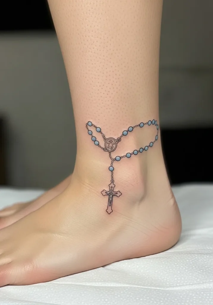 I am really drawn to ankle rosary tattoos like this. They feel personal and symbolic in such a gentle way. It feels like devotion expressed softly rather than boldly.