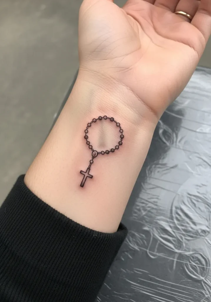 I am always drawn to wrist rosary tattoos like this. They feel gentle and comforting without trying to stand out. It feels like a calm expression of faith that fits naturally into everyday life.
