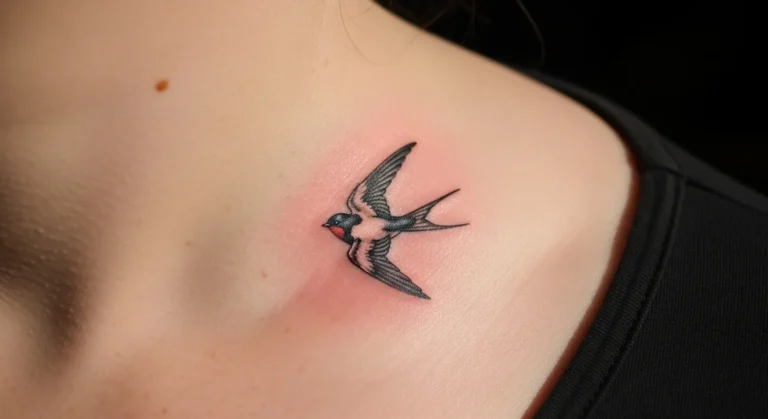 I think this one’s so symbolic and sweet. Swallows often stand for freedom, love, and safe return—it’s such a pretty way to wear meaning close to the heart.