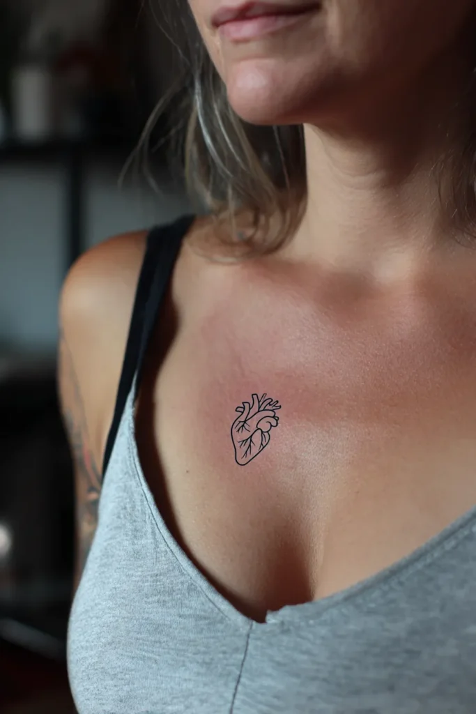 I always adore collarbone tattoos because they feel so personal yet softly visible. This one feels especially intimate, like a quiet promise resting close to the heart. It is minimal in the best way, clean and intentional, which makes it timeless. If someone wants something modern that still carries deep meaning, this placement is honestly perfection.