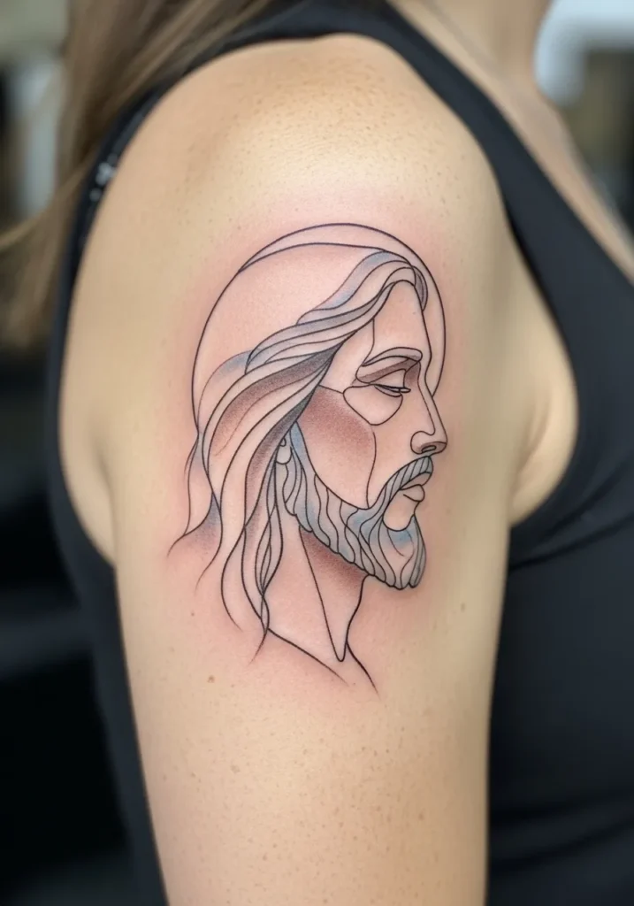 Modern Jesus Profile Upper Arm Tattoo
