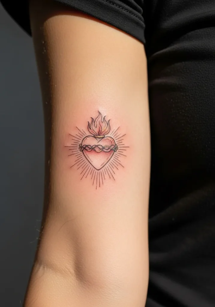 This one really stands out to me because it blends tradition with a fresh feel. The linework keeps it light and wearable, while the sacred heart symbol adds emotional weight. It feels expressive without being overwhelming.