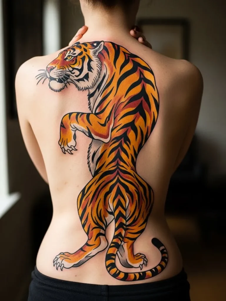 I have always had a soft spot for tiger tattoos because they carry this fiery confidence that I can never resist.