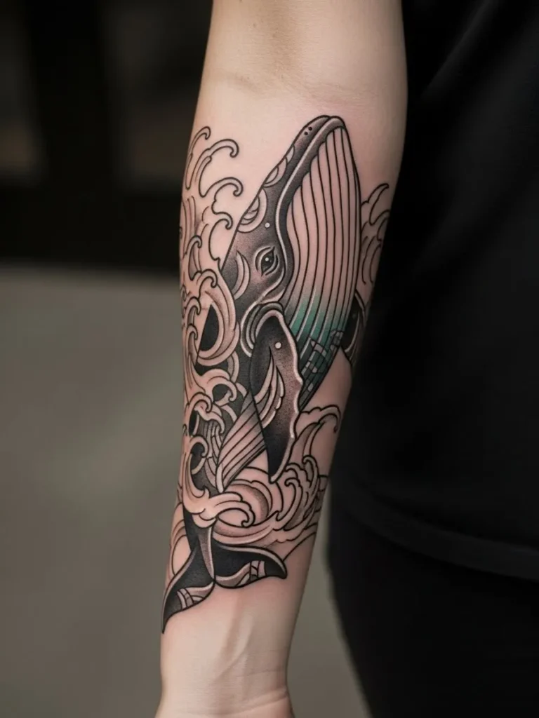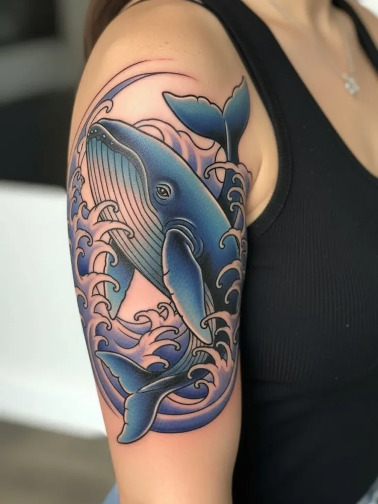 For me, a whale tattoo symbolizes strength, family, and a deep connection to the mysterious sea.