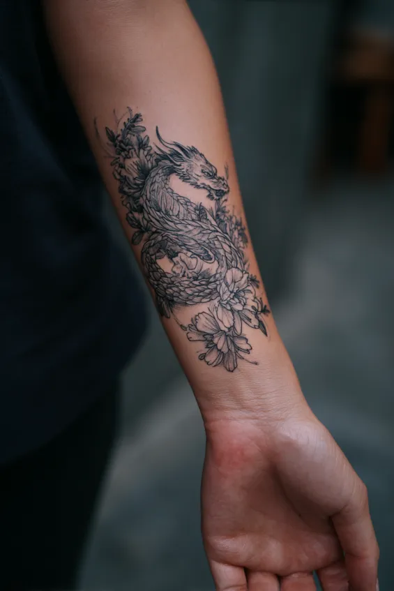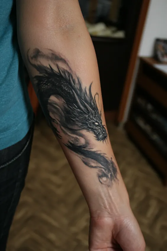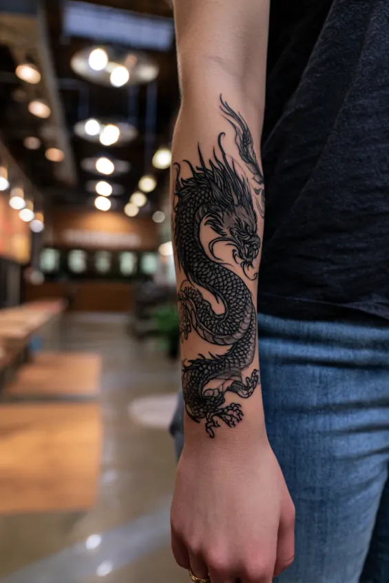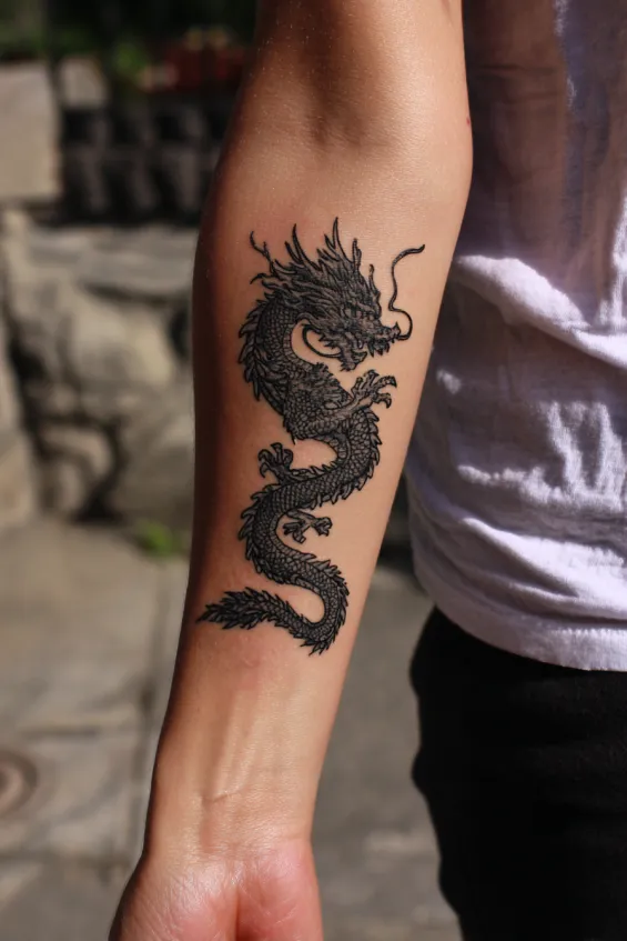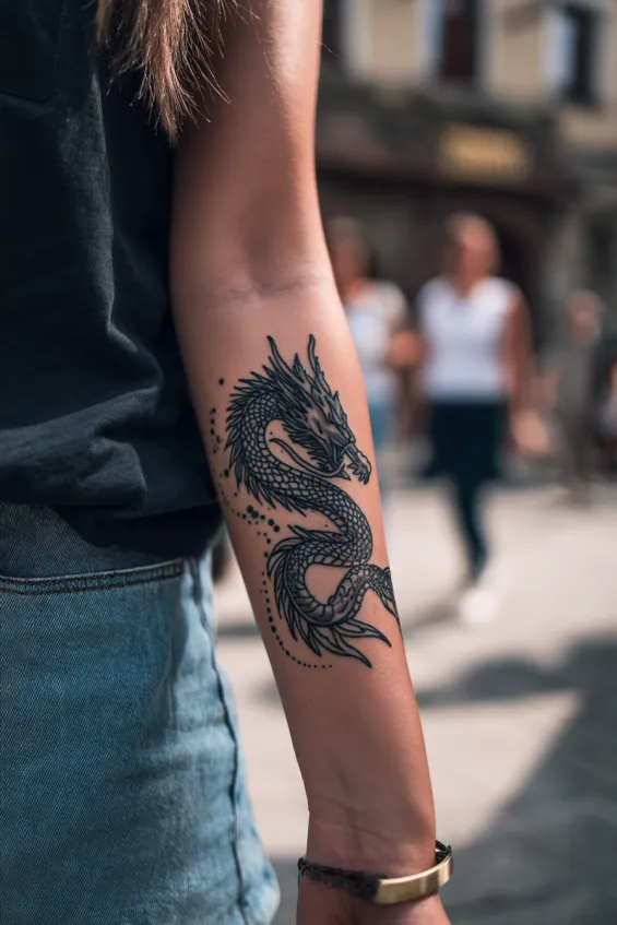 I have always loved how a dragon tattoo can feel powerful and graceful at the same time, especially when it sits perfectly along the forearm.