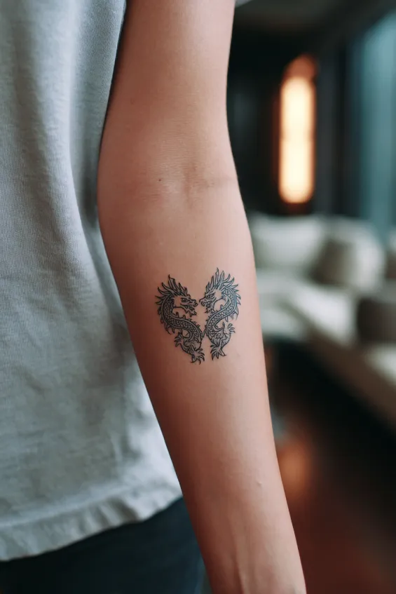 Delicate Twin Dragon Emblem on the Inner Forearm