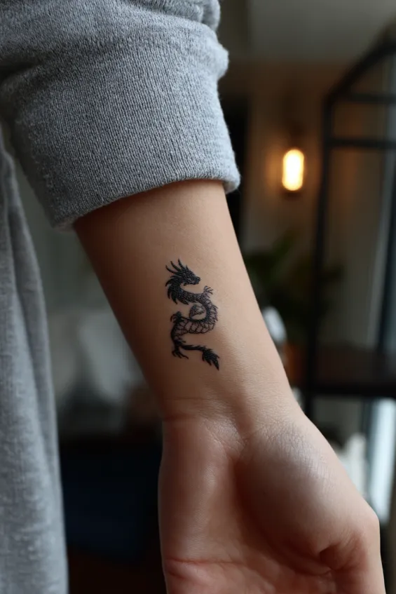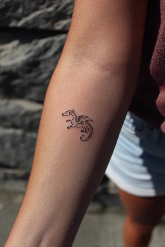 I adore how sweet and wearable this design feels. It is the kind of tattoo that pairs effortlessly with bracelets and everyday outfits. Sometimes the smallest dragons carry the biggest charm.
