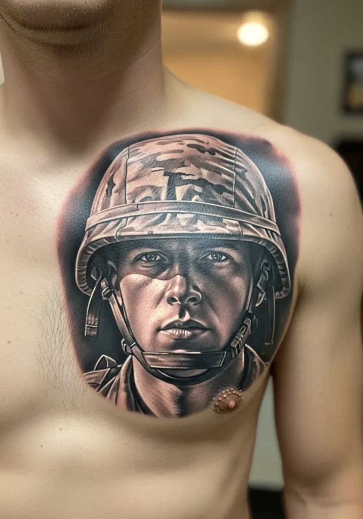 Soldier Portrait Chest Tattoo