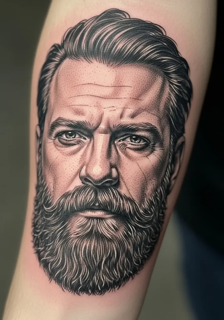 Bearded Man Realism Tattoo
