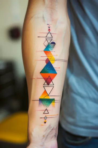 Geometric Forearm Pride Tattoo with Rainbow Shapes