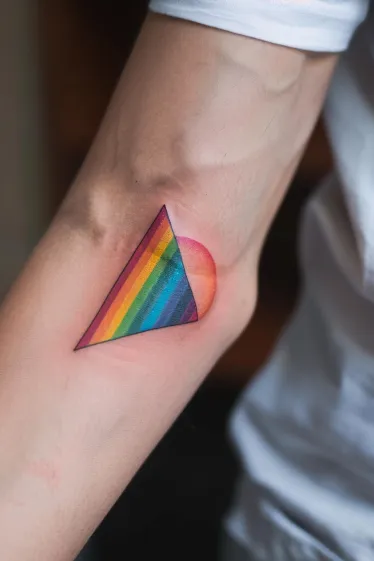 Minimalist Triangle Pride Tattoo with Sunset Glow