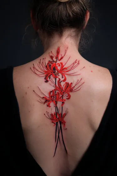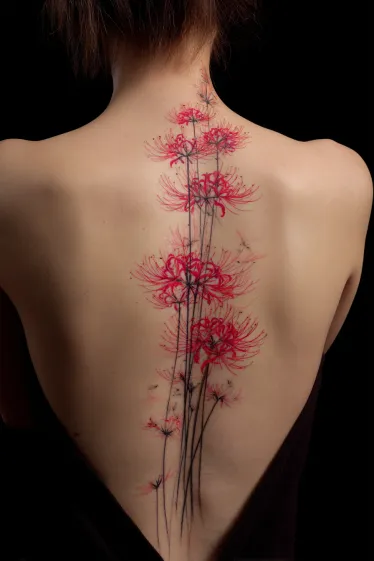 Red Spider Lily Spine Tattoo
