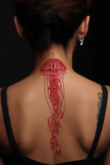 Red Jellyfish Spine Tattoo