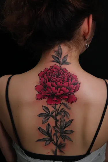 Red Peony Spine Tattoo
