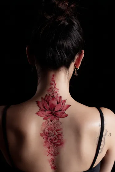 Red Lotus Spine Tattoo