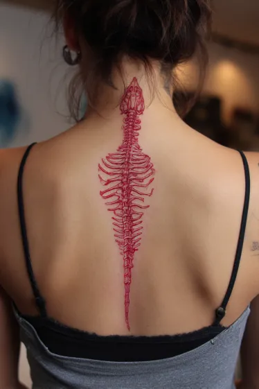 Red tattoos always catch my eye, but there’s something about a red spine tattoo that feels extra bold and unforgettable.