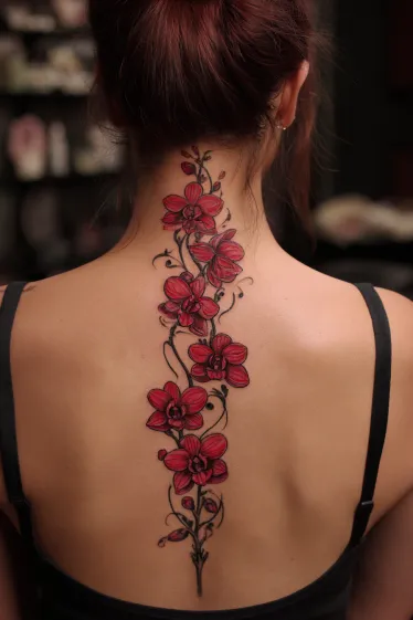 Red Orchid Spine Tattoo
