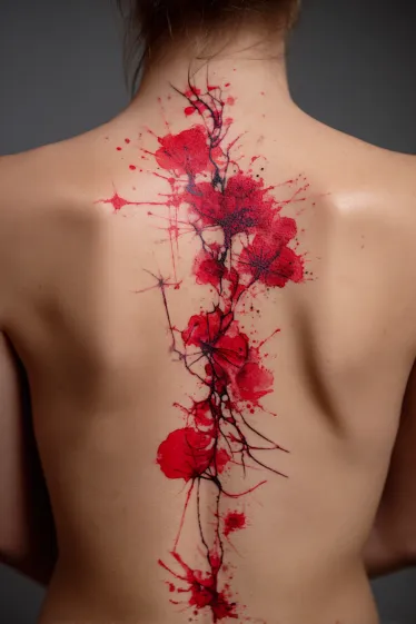 Red Watercolor Flower Spine Tattoo