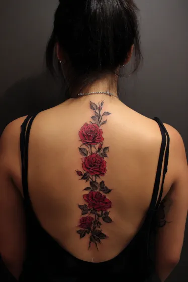 Red Rose Spine Tattoo