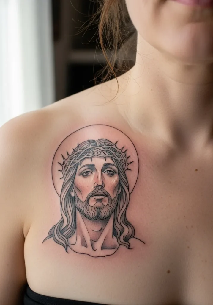 Gentle Christ Portrait on the Collarbone