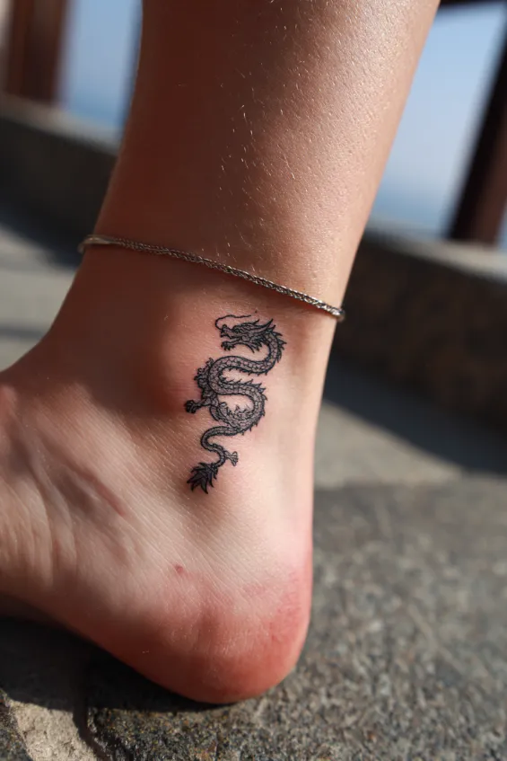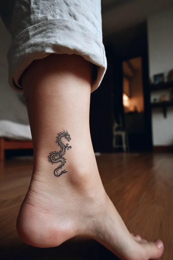 I love ankle tattoos because they are easy to show off or hide. This little dragon feels playful but polished at the same time. It is perfect for someone who wants a touch of fierceness without committing to a larger piece.