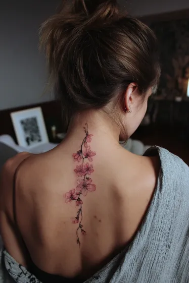 Cherry Blossom Spine Tattoo
